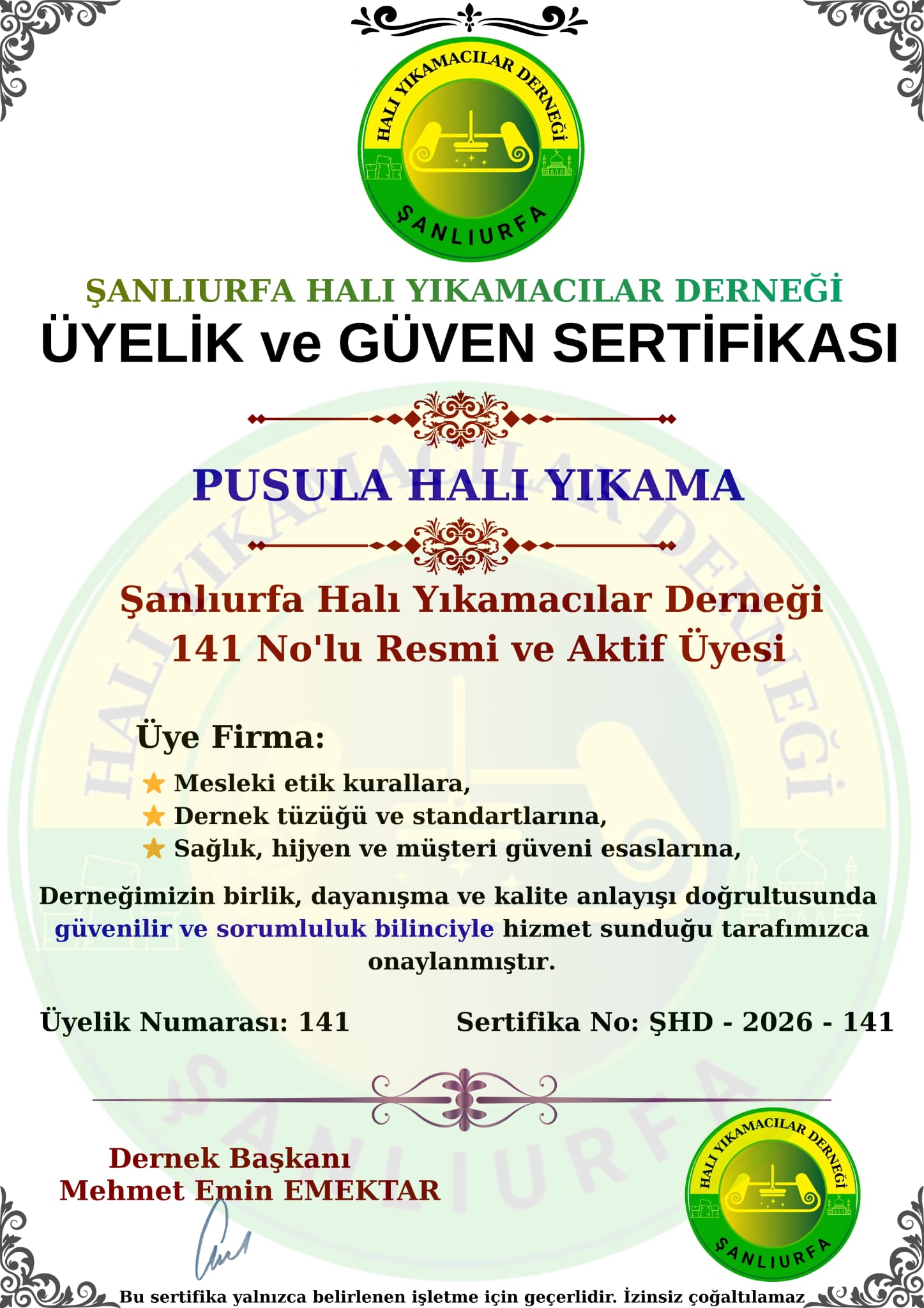 Urfa Pusula Halı Yıkama olarak müşterilerimize her zaman en kaliteli hizmeti sunmayı amaçlamaktayız...